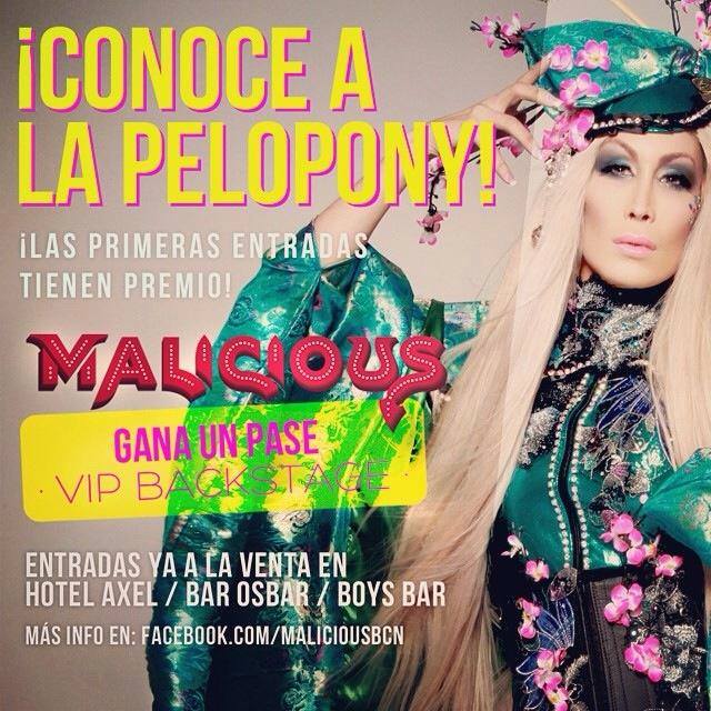 ¿Quieres tu entrada anticipada? Pues puedes ir ahora mismo a comprarla en los puntos de venta autorizados (Hotel Axel, Osbar y Boys Bar) o comprarla a través de Atrápalo.com. Las maricas precavidas tienen recompensa, y es que no sólo te saldrá más barato sino que además entrarás en el sorteo de un pase VIP BACKSTAGE para que puedas conocer a La Pelopony.