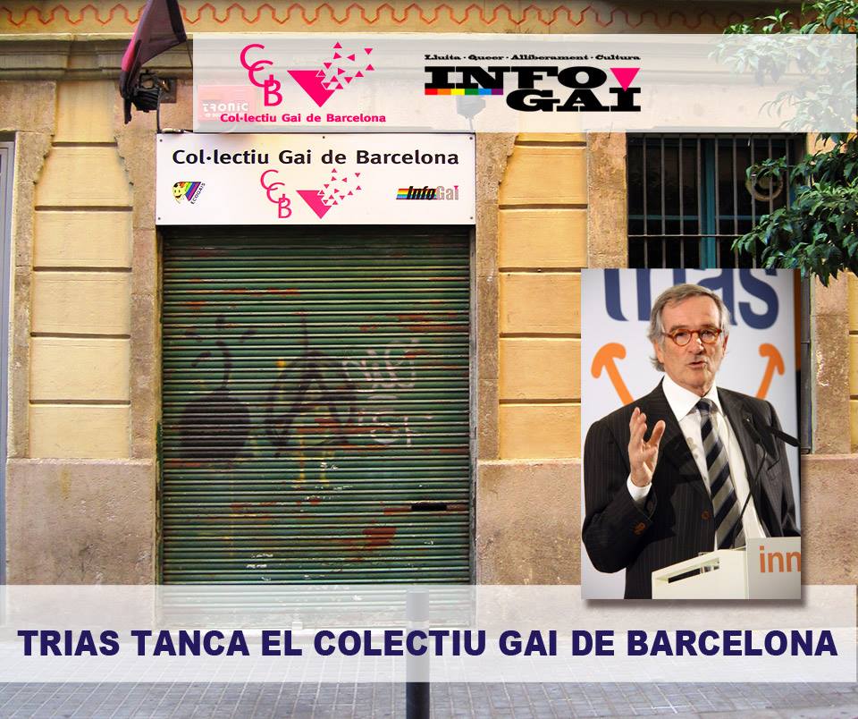 Los chicos del Col·lectiu Gai de Barcelona han anunciado en Facebook que, tras un montón de presiones por parte del Ayuntamiento (con Xavier Trias -CiU- a la cabeza), han tenido que clausurar su sede en el número 23 del Passatge de Valeri Serra.