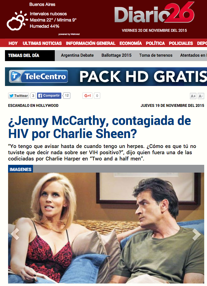 Estarás pensando que a ti qué te importa que una loca como Jenny McCarthy se ponga a decir tonterías en la radio. Pero éste es precisamente el tipo de comentario surgido de la ignorancia que conduce a la serofobia. Y por si crees que estoy exagerando, mira el titular de este maravilloso medio argentino: