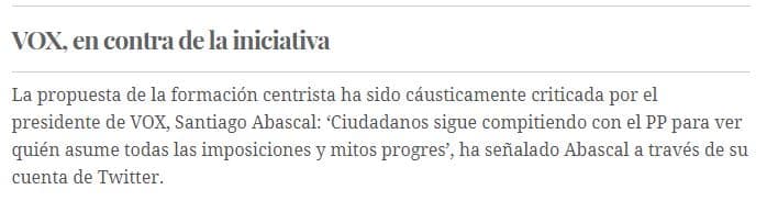 Esta vez es el propio redactor quien alaba a VOX por criticar la medida. Claro que también dice que son una «formación centrista»: