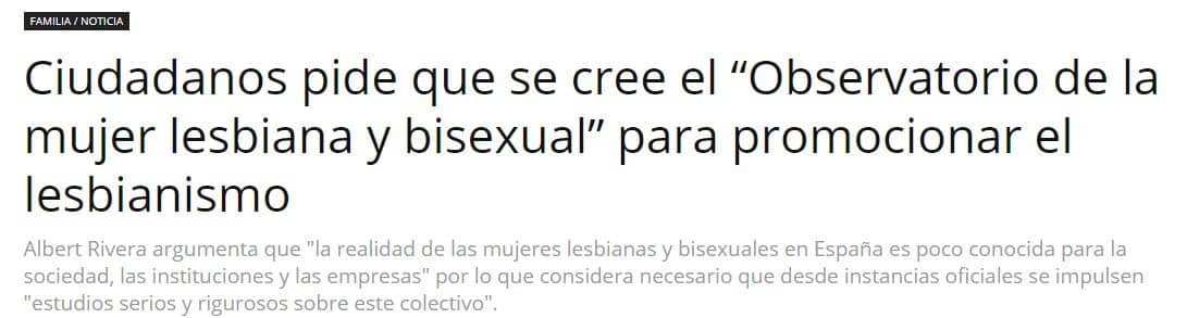 Ciudadanos dice que quiere un «Observatorio de la Mujer Lesbiana y Bisexual» y algunos medios de comunicación entran en pánico.