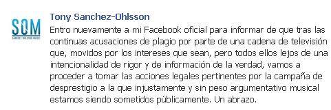 La semana que viene tenemos nuestro propio drama programa para seleccionar representante a Eurovisión, y mientras Divinity sigue con su apoyo masivo a Ruth Lorenzo (¡Brava! ¡Y reina, y reina y reina!), esta semana el compositor de la canción de Brequette, Tony Sánchez-Ohlsson, amenazaba vía facebook con llevar a los tribunales a todos los medios que afirman que su producción es plagio en esa supuesta campaña de acoso y derribo.