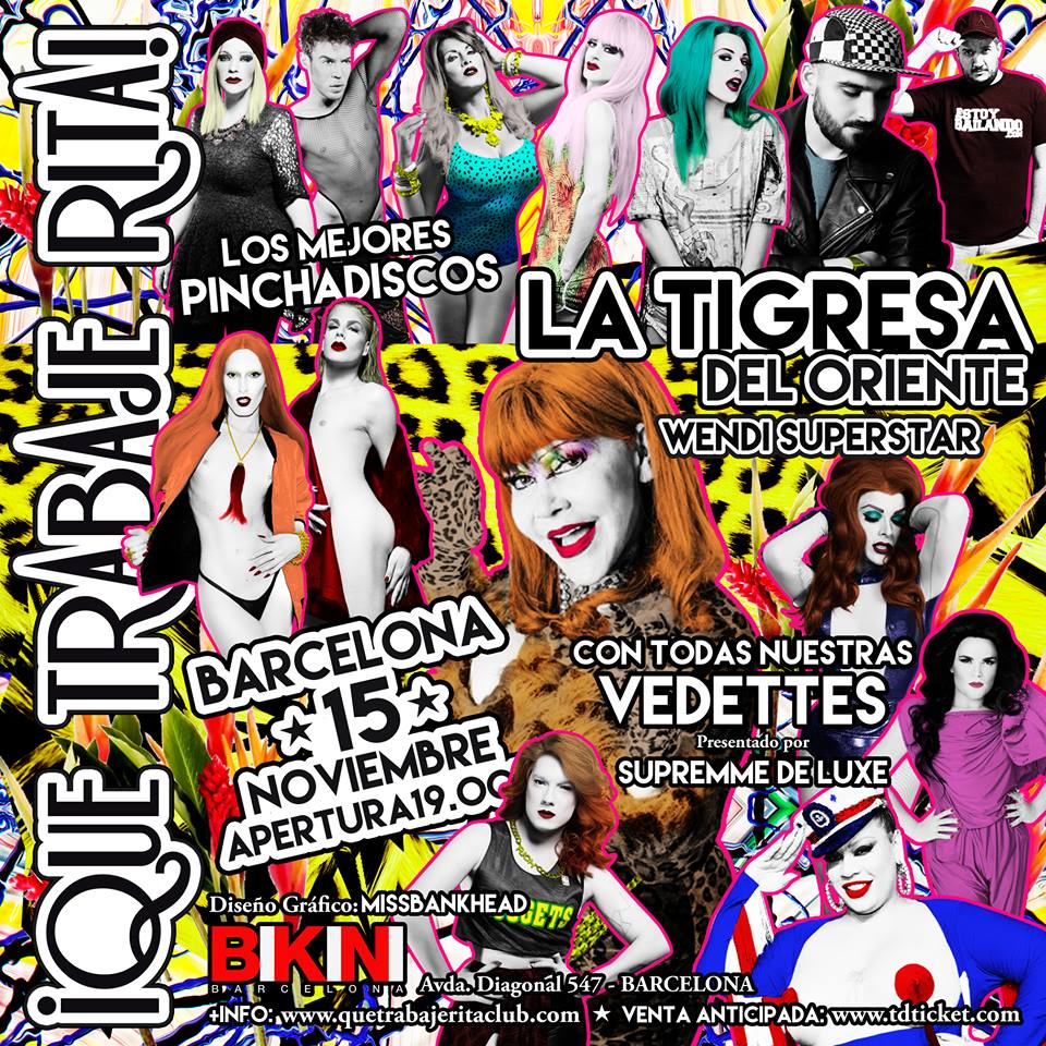 ¡Que Trabaje Rita! sigue imparable su periplo fiestero por toda España y ha llegado el momento de la re-inauguración de la temporada en Barcelona, una de las ciudades emblemáticas para la fiesta. Y para la ocasión la fiesta cambia de ubicación y nos vamos a la MA-RA-VI-SHO-SA sala BIKINI, en la Avda. Diagonal; un espacio nuevo con mil y una sorpresas en el que estaréis comodísimos. Además el equipo ritero ha montado un cartel de los que hacen historia. No estoy exagerando, pero es que no todos los días en una fiesta estoy yo pinchando aparece…
