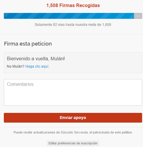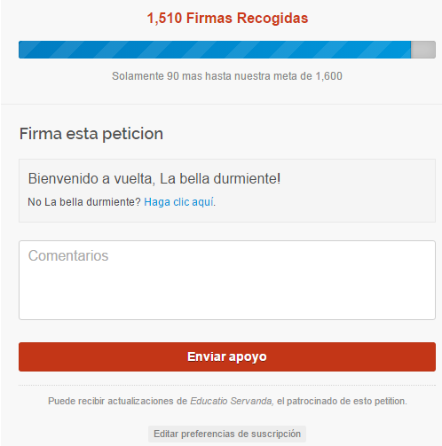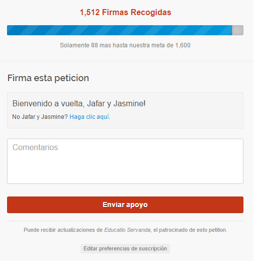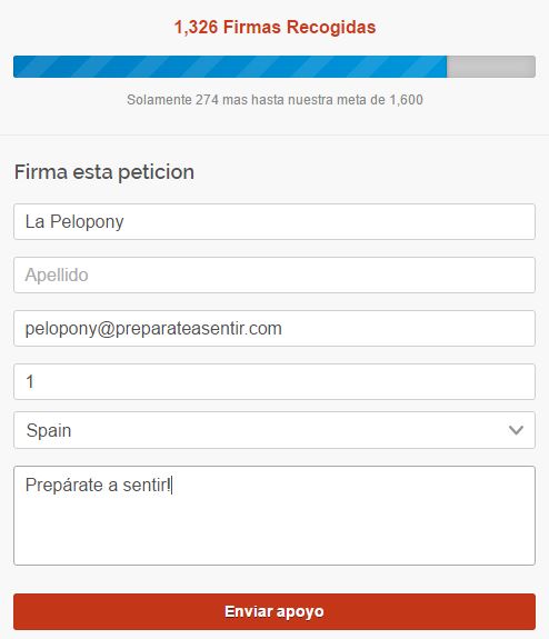 ¿Y por qué decimos que es absurda? Por dos motivos: Por un lado, nos llama la atención que el objetivo que se han marcado sea de 1600 firmas, ya que parece fácilmente alcanzable si tenemos en cuenta los millones de personas que se declaran católicos en este «bendito» país… Sin embargo, también es curioso el sistema de verificación de firmas que es… inexistente. Sí amigas. cualquiera puede firmar. De hecho, decidimos hacer una prueba… Mirad cómo hemos podido firmar una primera vez: