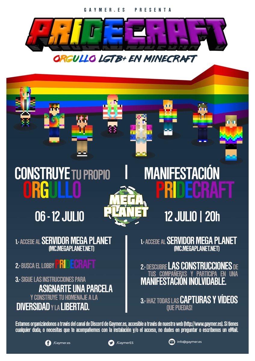 • Gaymer.es está colaborando con otros colectivos relacionados con los videojuegos y cuenta con la ayuda de Servidor MEGA Planet, la red de servidores de Minecraft de habla hispana más extensa, donde se celebrarán las diferentes actividades.
