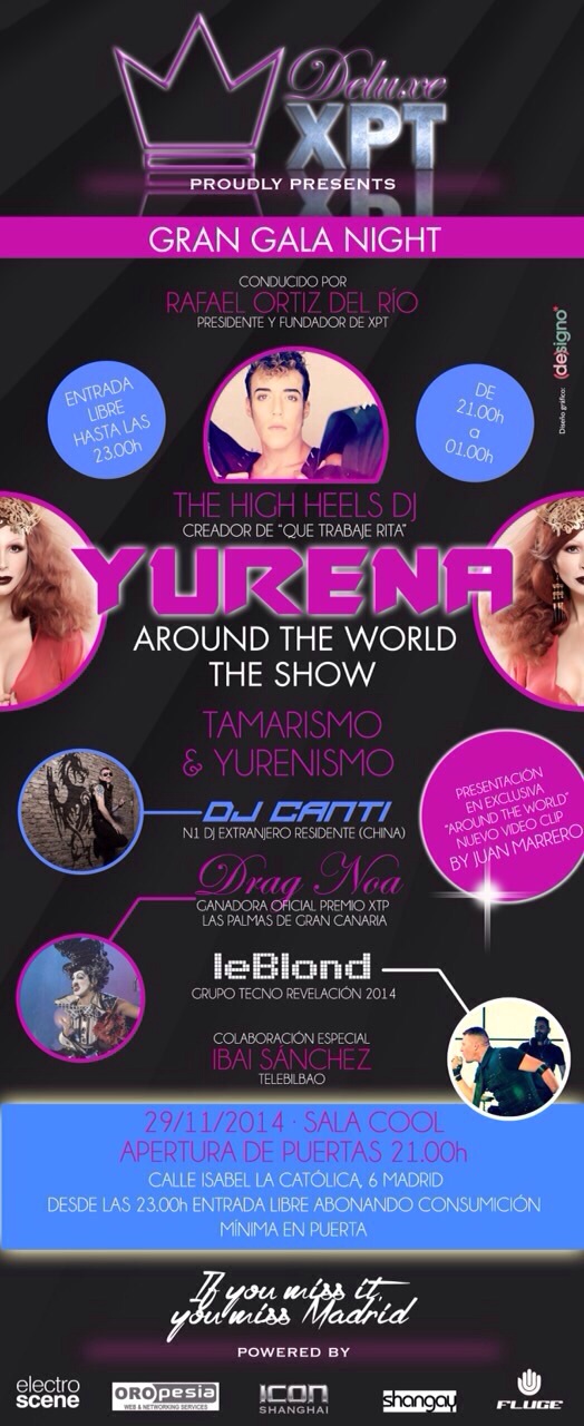 El estreno del vídeo tendrá lugar el próximo 29 de Noviembre en un fiestón que los chicos de XPT Deluxe han organizado en la Sala Cool de Madrid y que contará con la presencia de la mismísima Yurena (obvio), las actuaciones de Le Blond y Drag Noa; y la música de The High Heels y DJ Cantidubi.